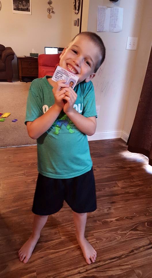 | Daniel with his new ID card after touring the police station |