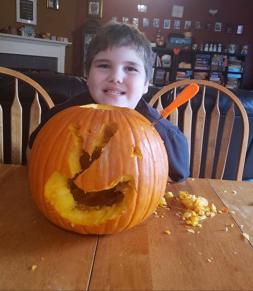 After he got home, Zak took the rest of the day off because he has very little schoolwork to do this week. AJ and Daniel did a great job of attending all of their Zoom calls and staying on task to finish all of their work. When they were done with all of their work, we called Adrian down and we carved pumpkins for the first time ever. The boys did a great job of designing the faces and cutting out the patterns they drew, although they wanted nothing to do with scooping out the guts. That job fell to Adrian and I, and I saved all of the seeds so I can roast them over the weekend for snacks. The pumpkins all came out great and the boys had a blast. They said they want to do this every year from now on!